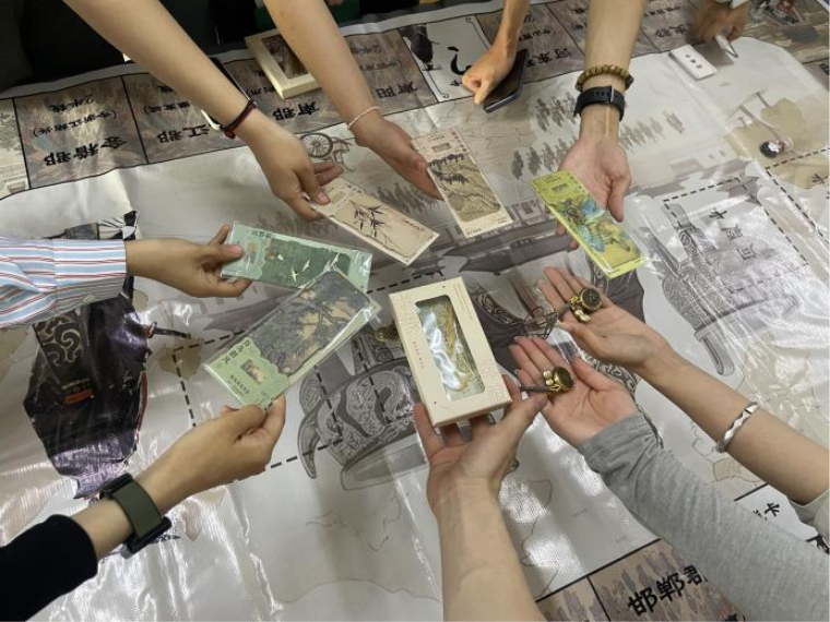 游戏棋盘以秦朝疆域为背景,参与者从“咸阳”出发,途经“渔阳郡”“长沙郡”等历史地标,最终抵达“咸阳宫”。每处地标设有知识问答或趣味任务,如“秦朝钱币名称”“孟姜女传说背景”等,让玩家在游戏中学习历史。活动融合历史、经济、艺术等多学科知识,建筑专业学生尝试绘制咸阳宫结构图,设计专业同学则思考如何将秦元素融入现代创作。活动让历史文化“活”起来,增强了同学们对传统文化的认同感与创新传承意识。