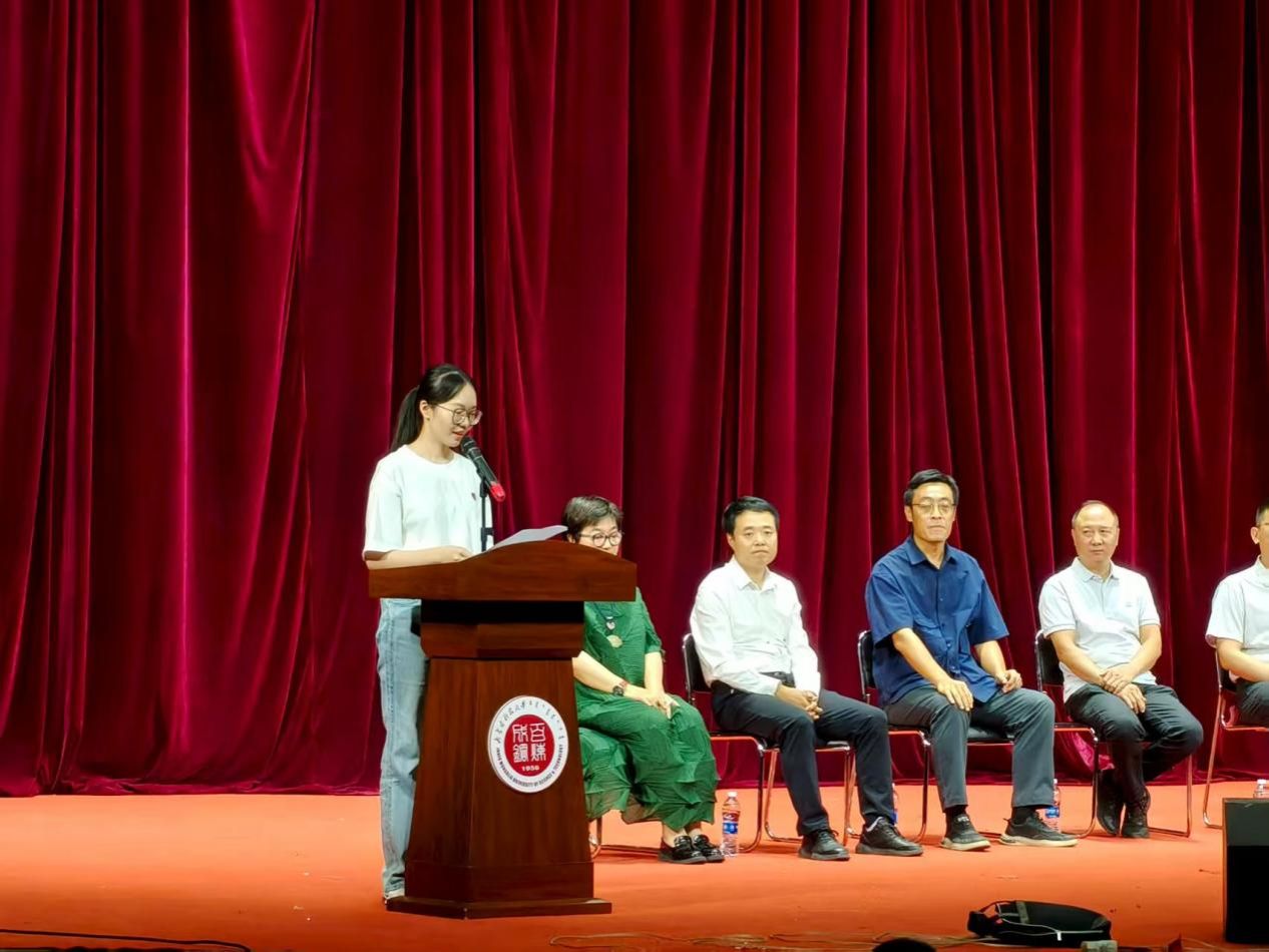 随后,优秀教师代表魏光普老师发言。他结合自身教学经验,从学习方法、实践能力等方面入手,鼓励新生主动探索、积极实践。