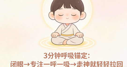 正念的核心,是把注意力拉回当下,不评判地觉察此刻的⼀切。每天 3 分钟,就能开启这场心灵疗愈: