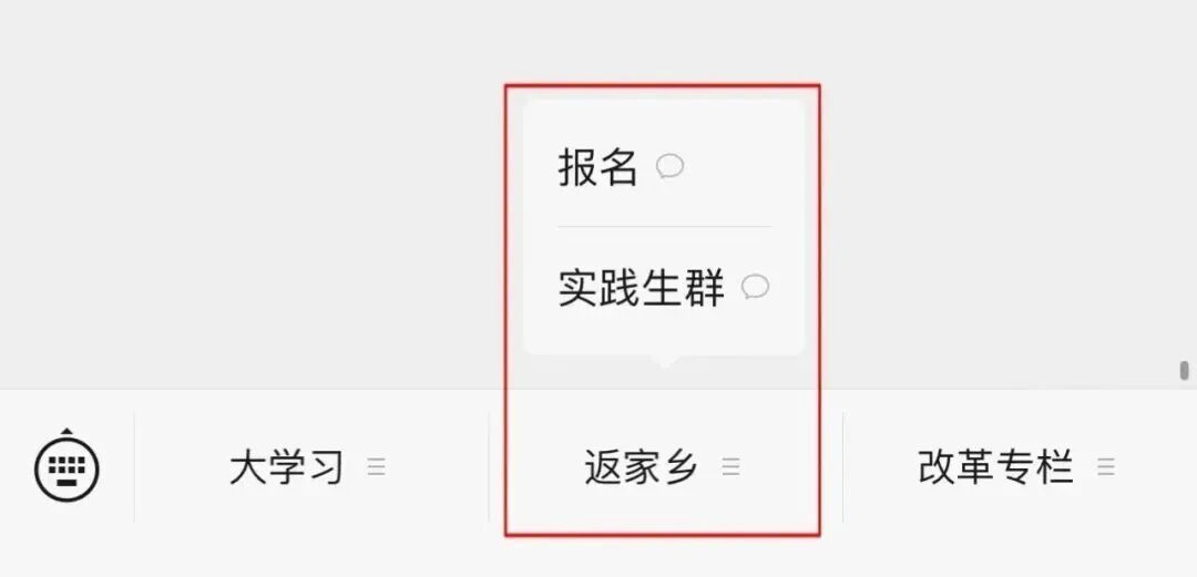 点击“返家乡”点击“报名”进行报名点击“实践生群”进实践生群