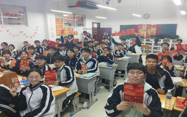 活动前期,精心筹备感恩礼包,定制专属红包,内附励志卡片与实用学习便利贴,将殷切期许藏于方寸,为同学们送去暖心鼓励。宣讲环节,通过PPT详细介绍内蒙古科技大学发展历程、办学特色、学科建设成果、人才培养方向及报考资讯,为同学们答疑解惑。宣讲尾声,感恩礼包逐一分发,真诚叮嘱与暖心卡片传递着科大学子的责任与温度;活动最后,全体人员合影留念,为此次感恩之行画上圆满句号。