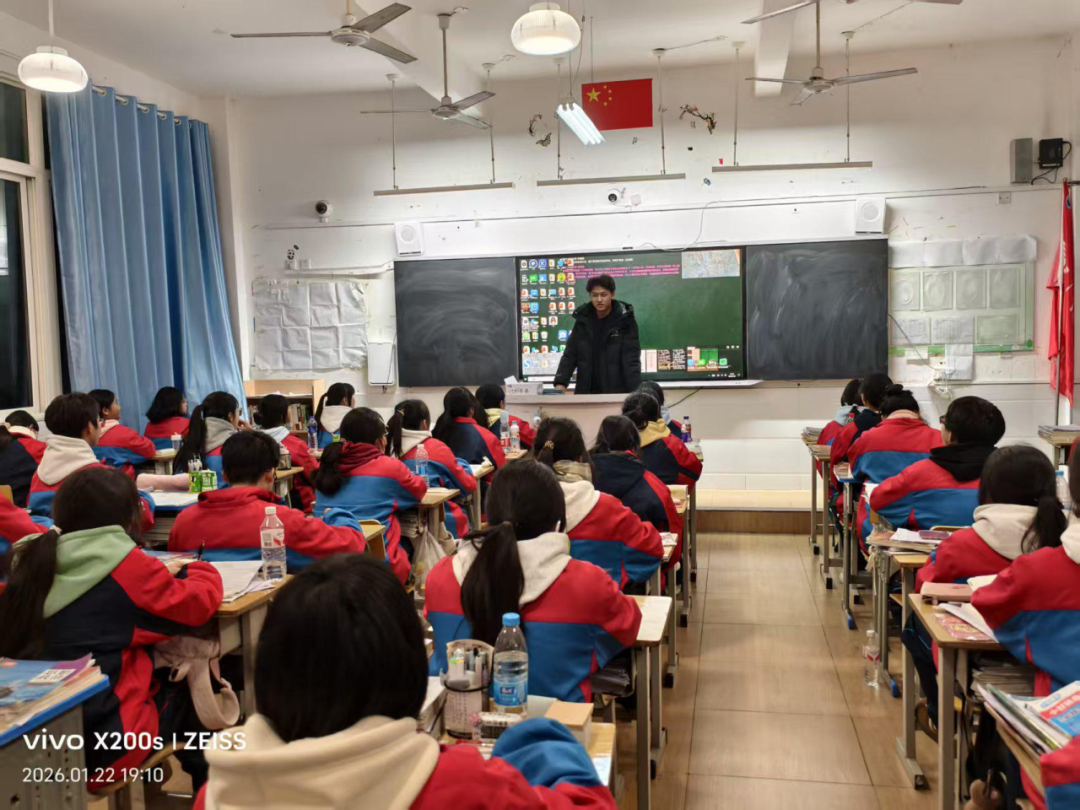 2026年1月22日,在遵义市第二十一中学,况安炀同学站在讲台上,结合自身经历,向学弟学妹们介绍了内蒙古科技大学的办学特色、专业优势、校园生活及就业前景。通过PPT展示、面对面交流等形式,他们生动讲述了在科大的学习日常与成长收获,细致解答了同学们关于专业选择、志愿填报、备考心态等方面的疑问,用过来人的经验为大家加油鼓劲。
