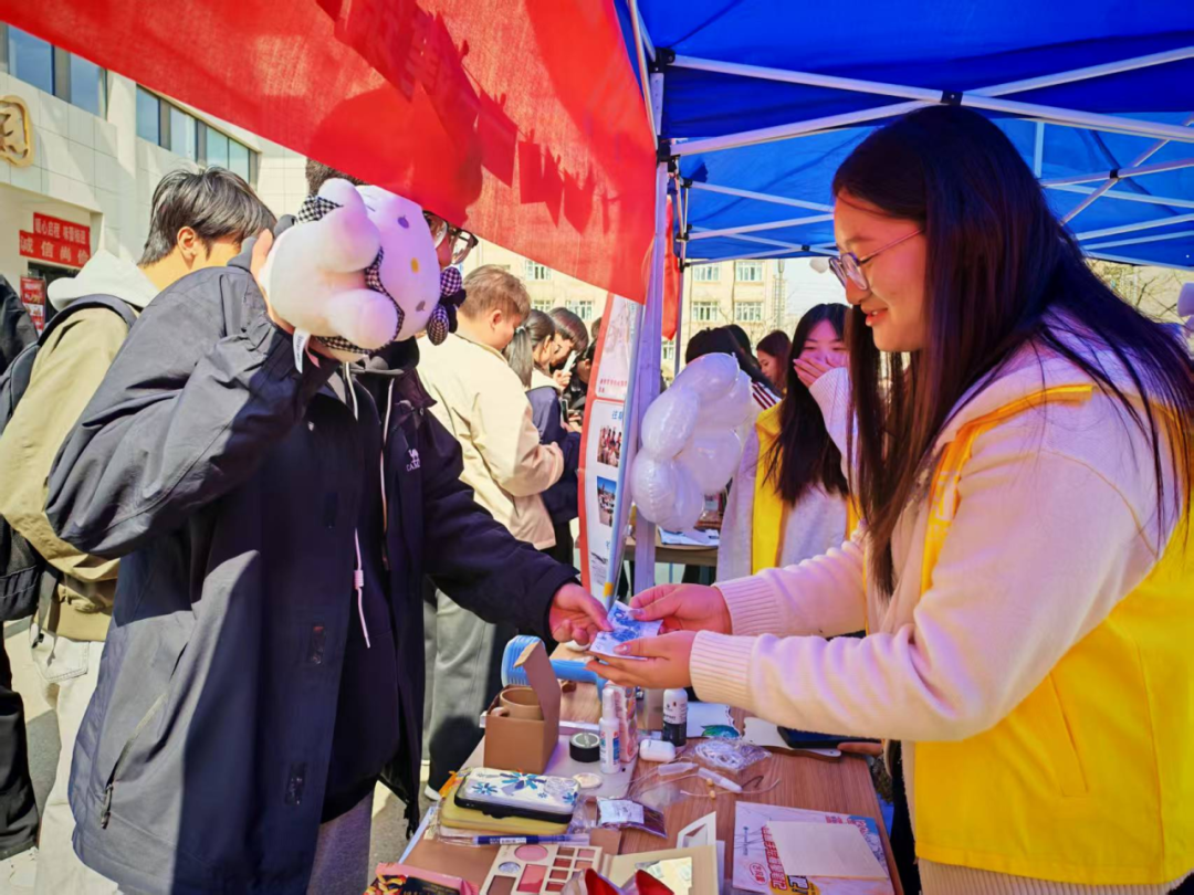 组织志愿者在颐园食堂门口开展“践行低碳环保,共赴绿色生活”植树节义卖志愿活动,用爱心义卖汇聚温暖力量,以实际行动播撒绿色希望,传递公益温暖。