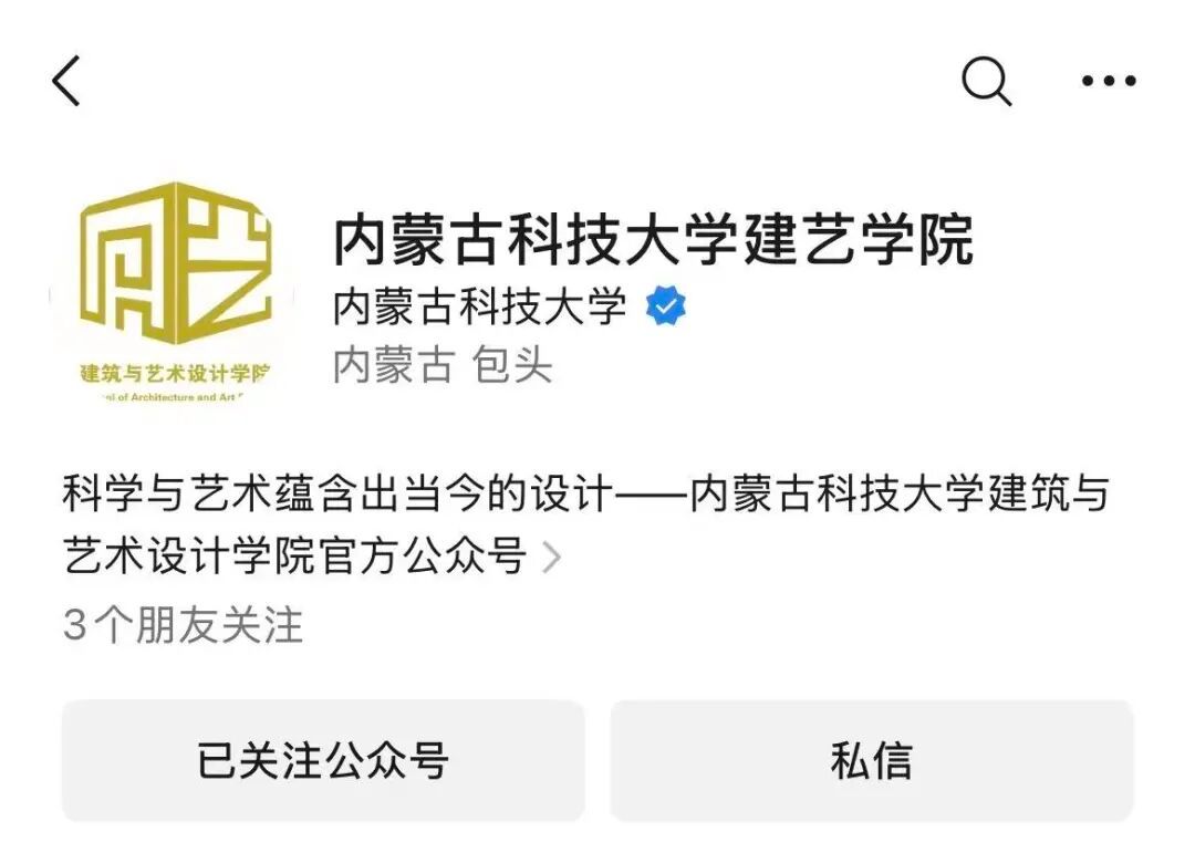 在微信搜索栏输入“内蒙古科技大学建艺学院”进行关注。